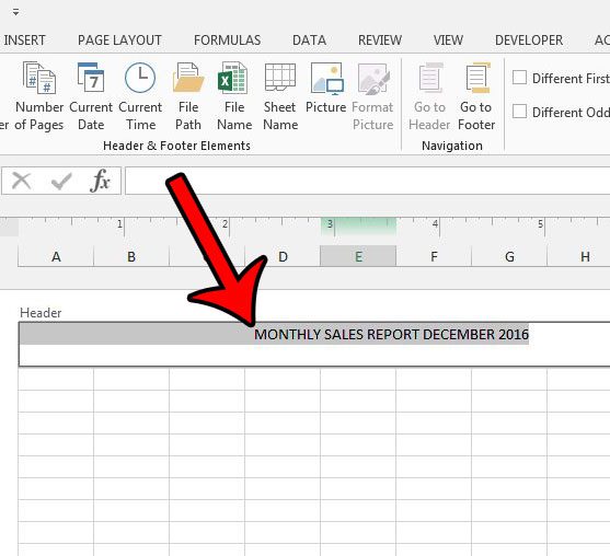 ステップ4:内部をクリックしますヘッダスプレッドシートの上部にあるフィールド。