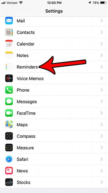ステップ2:下にスクロールして選択しますリマインダーオプション。