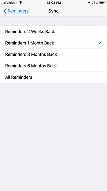 ステップ4:iPhoneでリマインダーを同期する時間をタップします。