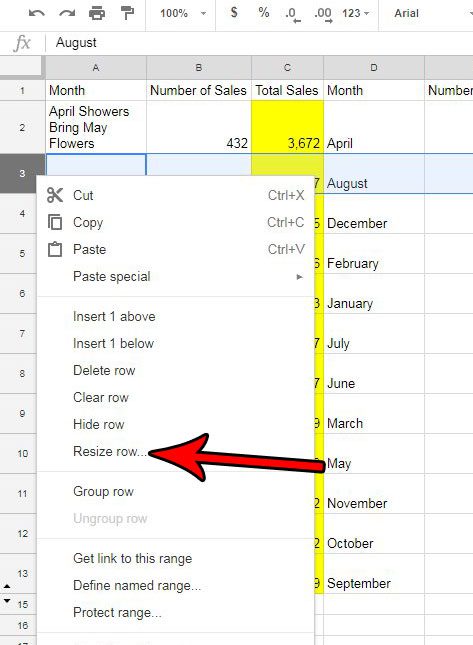 幸いなことに、Googleシートの行の高さを変更して、データのニーズに対応させることができます。以下のチュートリアルでは、行を選択し、新しい行の高さ値を入力する方法を示します。
