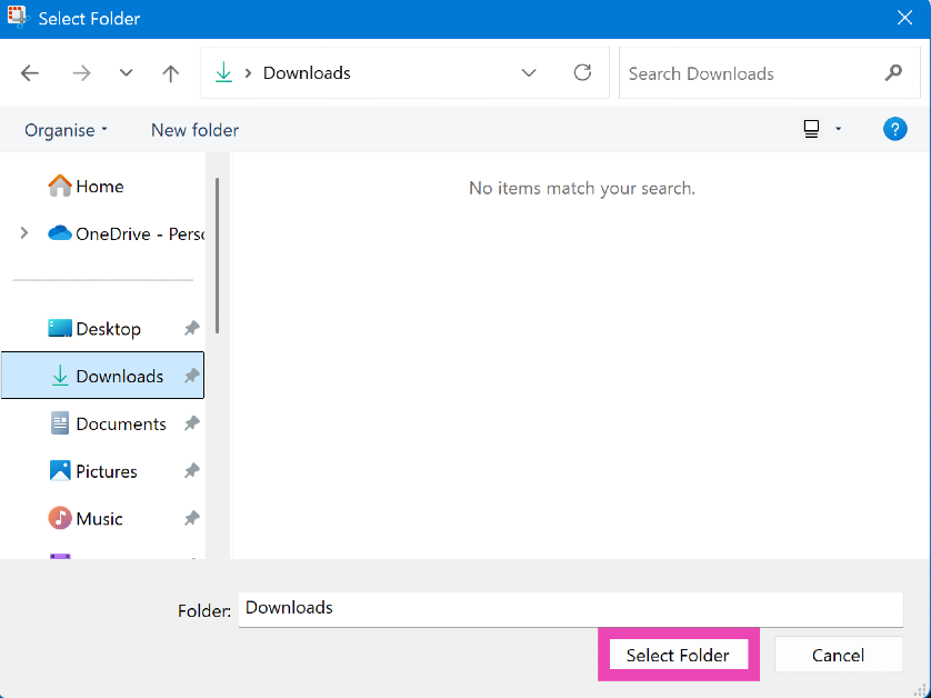 ステップ6:クリックしてくださいフォルダーを選択します。