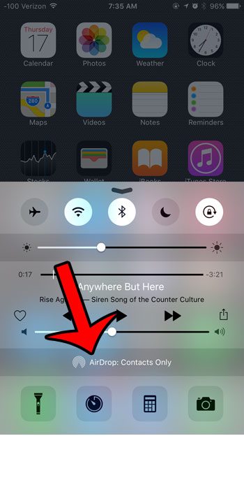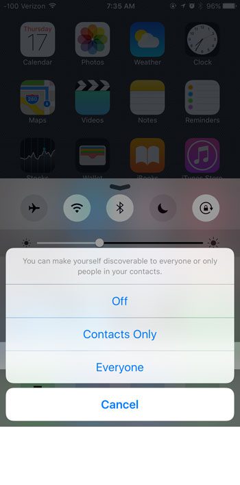 ステップ2:タップしますエアドロップコントロールセンターの下部近くのボタン。