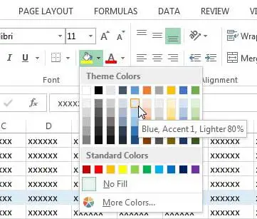 これにより、どのデータが同じ行にあるかを簡単に伝えることができます。さらに、スプレッドシートの見た目を良くすることができます。したがって、Excel 2013でセルに色を追加したい場合は、以下の手順に従ってください。