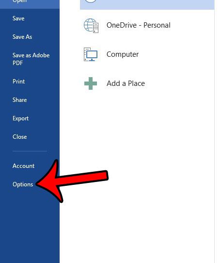 ステップ3:クリックしますオプションウィンドウの左側の列。これにより、呼ばれる新しいウィンドウが開きます単語オプション。