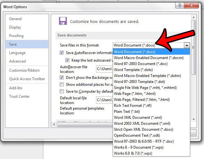 Word 2013でデフォルトのファイル形式を変更する方法がわかったので、以前に使用していたもの以外のファイルタイプとしてドキュメントの保存を開始できます。