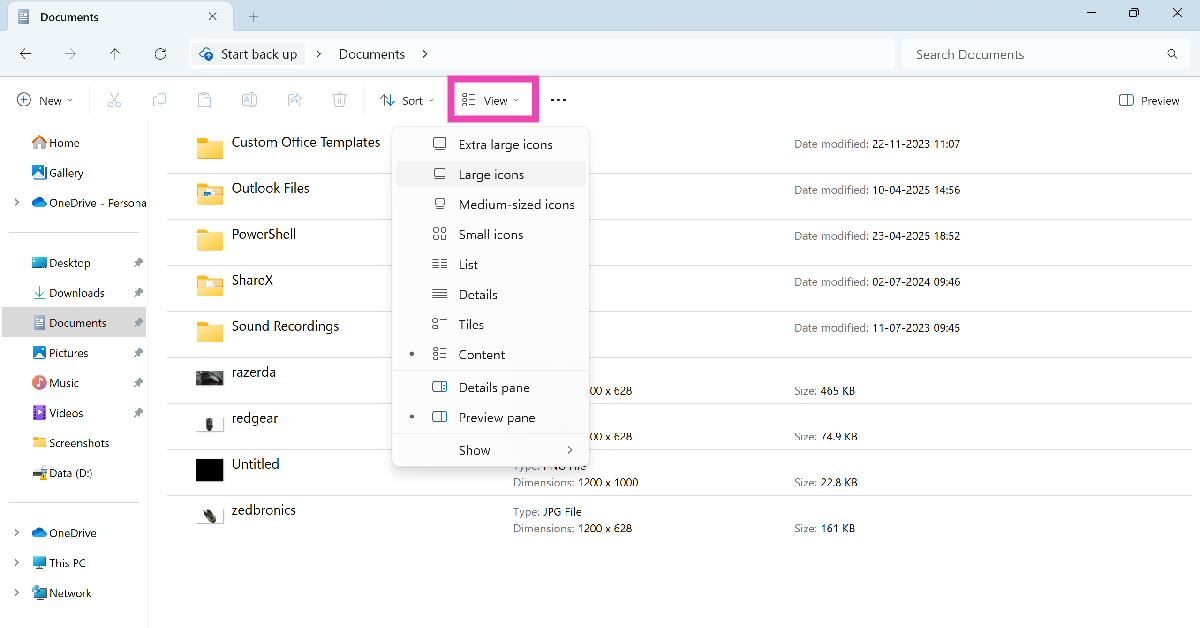Windows 11 PCのファイルとフォルダーのレイアウトは、あなたが思っている以上に重要です。画像でいっぱいのフォルダーがある場合、特大アイコンは各写真をすばやく覗き込むことができます。各フォルダーのサイズと変更の詳細を知りたい場合は、「コンテンツ」ビューが最適です。 Windows 11 PCまたはラップトップのファイルエクスプローラーのデフォルトのフォルダービューを変更する方法は次のとおりです。