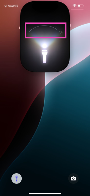 懐中電灯をオンにし、ダイナミックアイランドアニメーションの水平スライダーを使用してビーム幅と垂直スライダーを変更して輝度レベルを変更します。