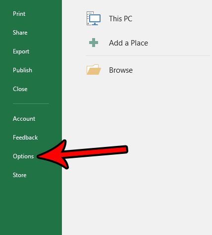ステップ3:クリックしますオプションウィンドウの左側にある列の下部にあるボタン。
