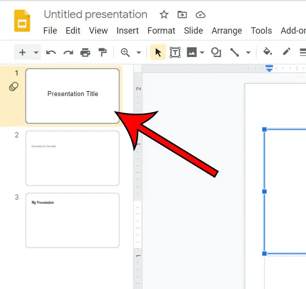 ステップ2:スケーリングするテキストボックスがあるウィンドウの左側にあるスライドを選択します。