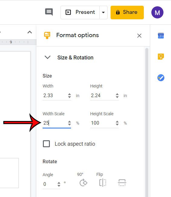 以下のガイドでは、Googleスライドでテキストボックスを選択し、スケールを変更して、スライド全体に比べて正確な希望のサイズにする方法を示します。