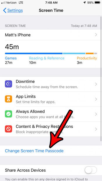 私たちの記事は、これらの手順の写真を含むiPhoneスクリーンタイムパスコードの変更に関する追加情報を以下に続けます。