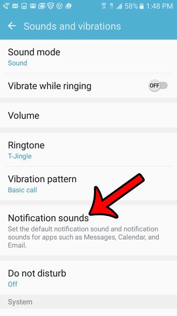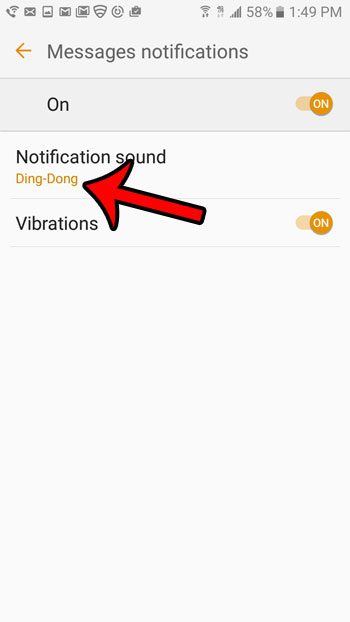 ステップ6:選択します通知音オプション。あなたは、振動この画面でテキストメッセージを受信したときのオプション。
