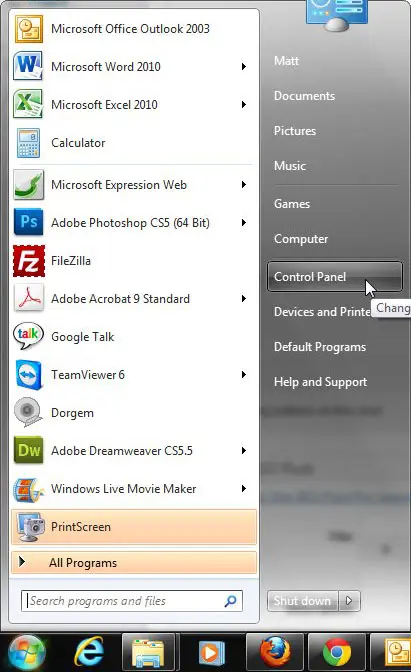 ステップ1:画面の左下隅にある[Windows]ボタンをクリックし、メニューの右側にある[コントロールパネル]をクリックします。