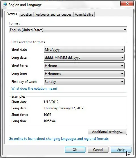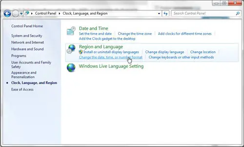 ステップ3:「地域と言語の下で青い「日付、時刻、または数値形式」リンクをクリックします。