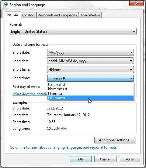 - クリックします長い間ドロップダウンメニュー、そしてクリックしますHH:MM:SSオプション。