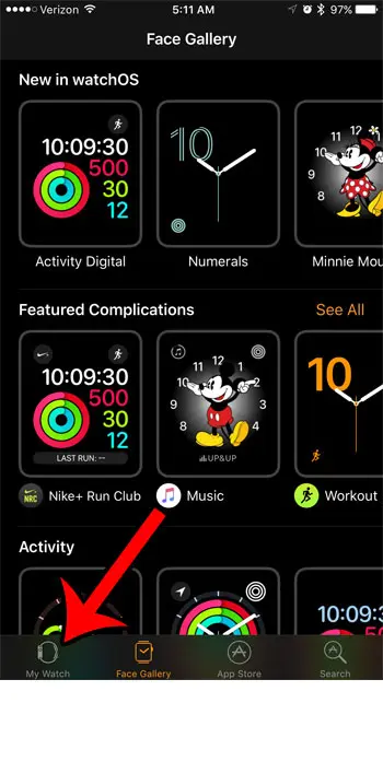 ステップ2:選択します私の時計画面の左下隅にあるタブ。