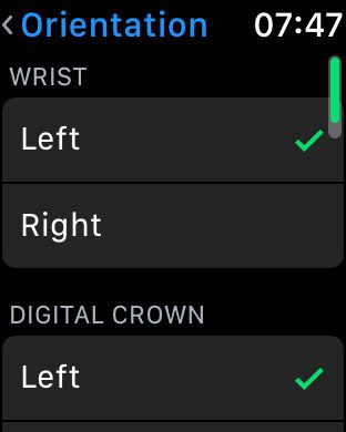 ステップ5:Apple Watchを着用したい手首を選択します。さらに、デジタルクラウンの設定が、手首の時計を着用する方法と一致することを確認してください。手首の設定を切り替えて、デジタルクラウンの設定を変更しない場合、時計の顔の向きは変わりません。