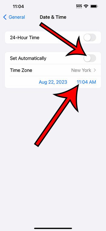 ステップ4:をオフにします自動的に設定しますオプション、次に時間をタッチします。