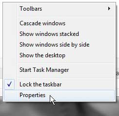 ステップ1:画面の下部にあるツールバーを右クリックして、クリックしますプロパティ。