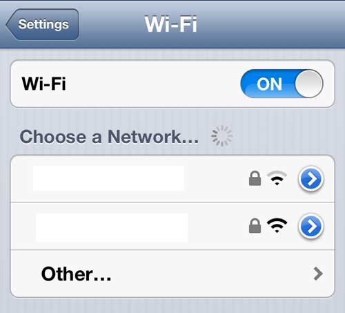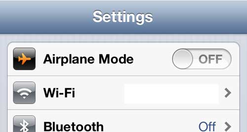 iPhone 5設定アイコンステップ2:タップしますWi-Fi画面の上部にあるボタン。