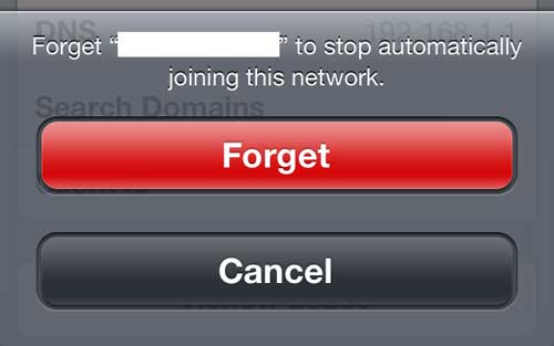 「このネットワークを忘れて」ボタンをタップしますステップ5:赤に触れます忘れる画面の下部にあるボタン。