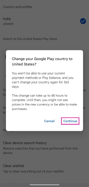 Google Playストアであなたの国を変える前に、留意する必要があることがいくつかあります。まず第一に、あなたの場所を変えるために、あなたのプレイストアアカウントは少なくとも1年前になければなりません。第二に、プレイストアプロフィールに設定する予定の国に基づいて有効なIPアドレスが必要になります。このタスクにはVPNアプリを使用できます。最後に、あなたがあなたのプロフィールに設定しようとしている国からの有効な支払い方法が必要になります。