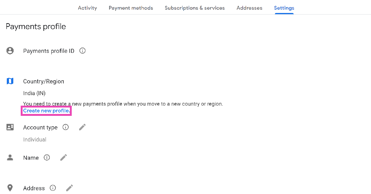ステップ5:クリックしてください新しいプロファイルを作成します。