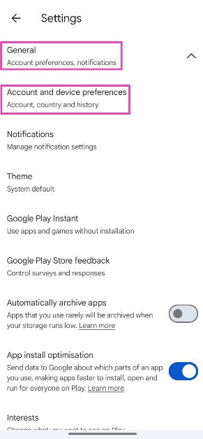 ステップ4:タップします一般的な選択しますアカウントとデバイスの好み。