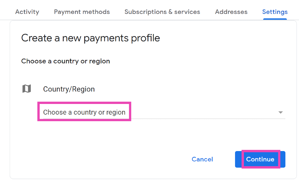ステップ7:下のドロップダウンメニューをクリックします国/地域希望の国を選択してください。打つ続く。