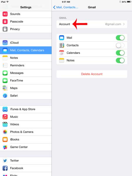 ステップ3:でGmailアカウントを選択しますアカウント画面の右側にあるセクション。
