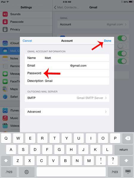 ステップ5:内側をタップしますパスワードフィールド、新しいパスワードを入力してから、タッチします終わりボタン。