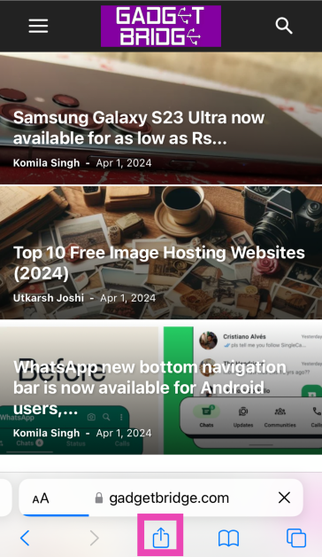 ステップ3:ヒットしますアイコンを共有します画面の下部に。