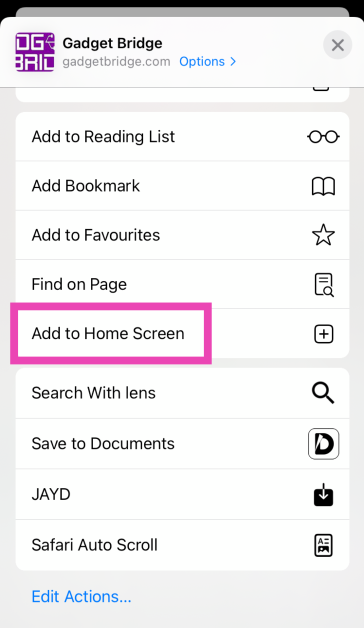 ステップ4:タップしますホーム画面に追加します。