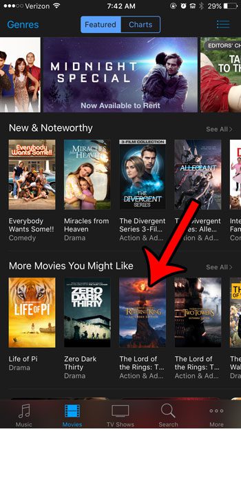 ステップ2:選択します映画画面の下部にあるタブ。