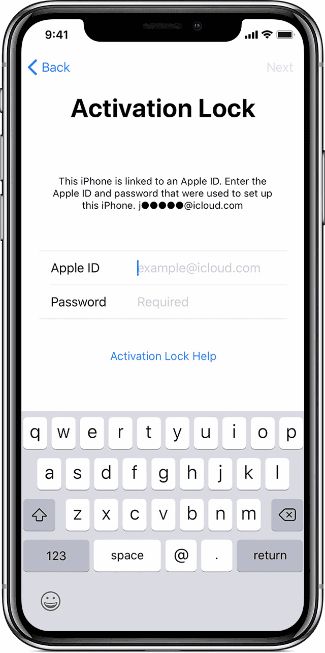 iPhoneをオンにできる場合は、スタートアッププロセスに細心の注意を払ってください。最初のセットアップ画面の後に前の所有者のApple IDとパスワードを求める画面が表示されている場合、電話はiCloudロックされています。