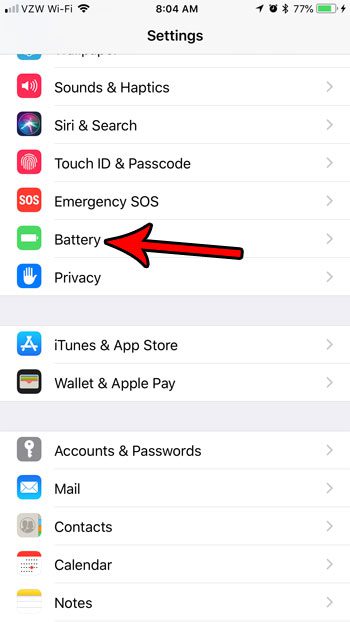 ステップ2:下にスクロールして選択しますバッテリーオプション。
