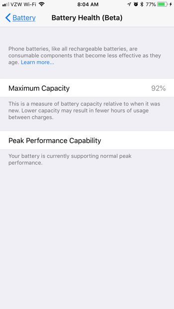 幸いなことに、iOS 11.3アップデートには、デバイスが実行されている容量の割合を知ることができる新しいバッテリーヘルス機能が含まれています。