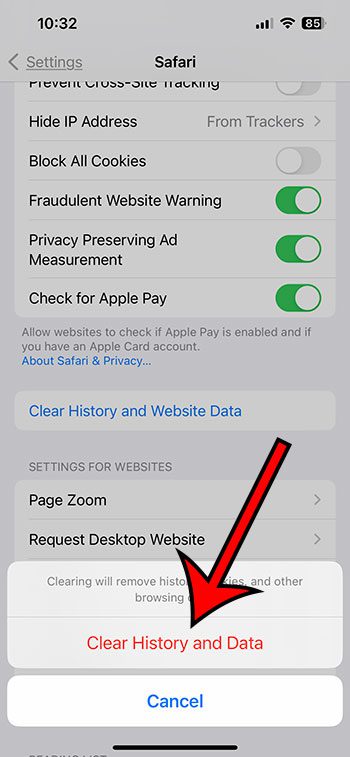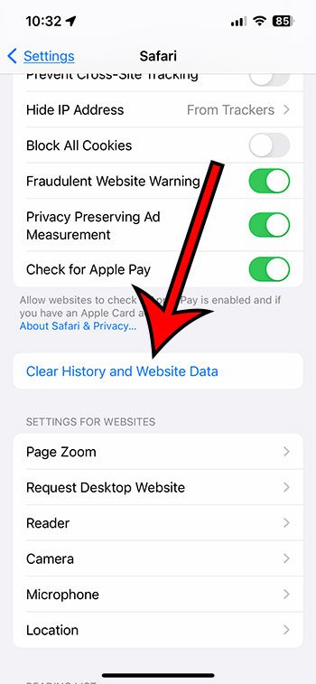 ステップ3:下にスクロールしてcをタップしますリアの歴史とウェブサイトのデータボタン。