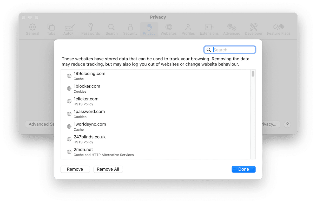 - [プライバシー]タブを選択し、[Webサイトデータの管理]をクリックします。