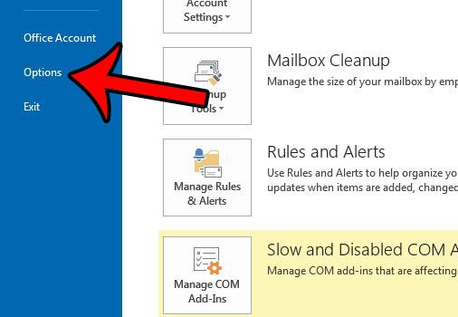 ステップ3:クリックしますオプションウィンドウの左側にある列の下部にあるボタン。