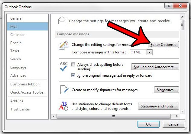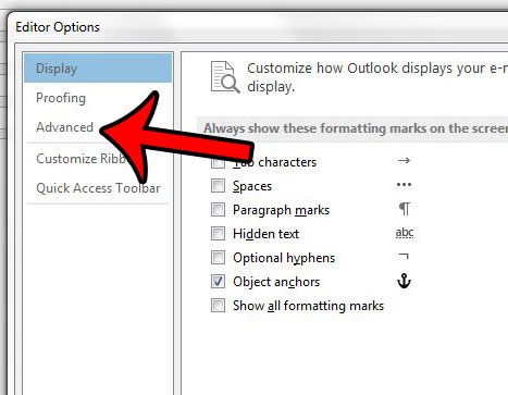 ステップ6:クリックします高度なの左列のタブエディターオプションウィンドウ。