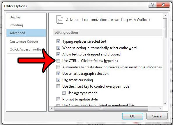 ステップ7:左側のボックスをクリックしますCtrl +クリックを使用して、ハイパーリンクをフォローしますチェックマークをクリアする。その後、クリックしますわかりましたウィンドウの下部にあるボタン。