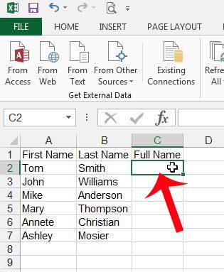 ステップ2:複合データを表示する最初のセル内をクリックします。この目的のために新しいフルネームコラムを作成しました。