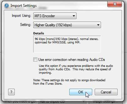 ステップ4:右側のドロップダウンメニューをクリックします使用してインポートします、次にクリックしますmp3エンコーダーオプション。