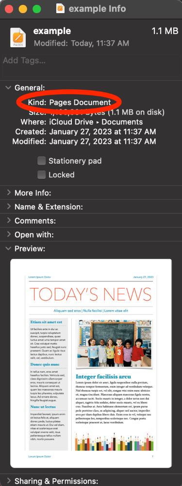 ファイルが保存されたら、あなたの場合右クリックそして情報を表示しますあなたはできる確認するファイルがaとして保存されていることページドキュメント。