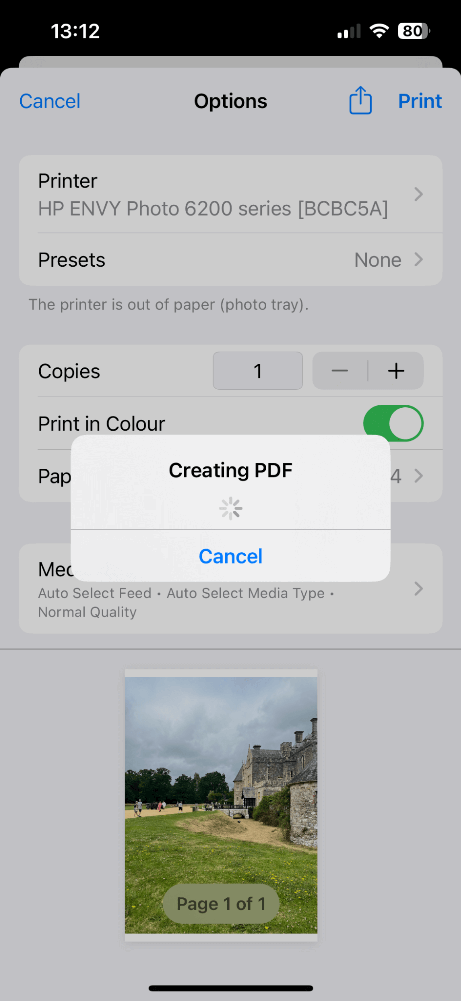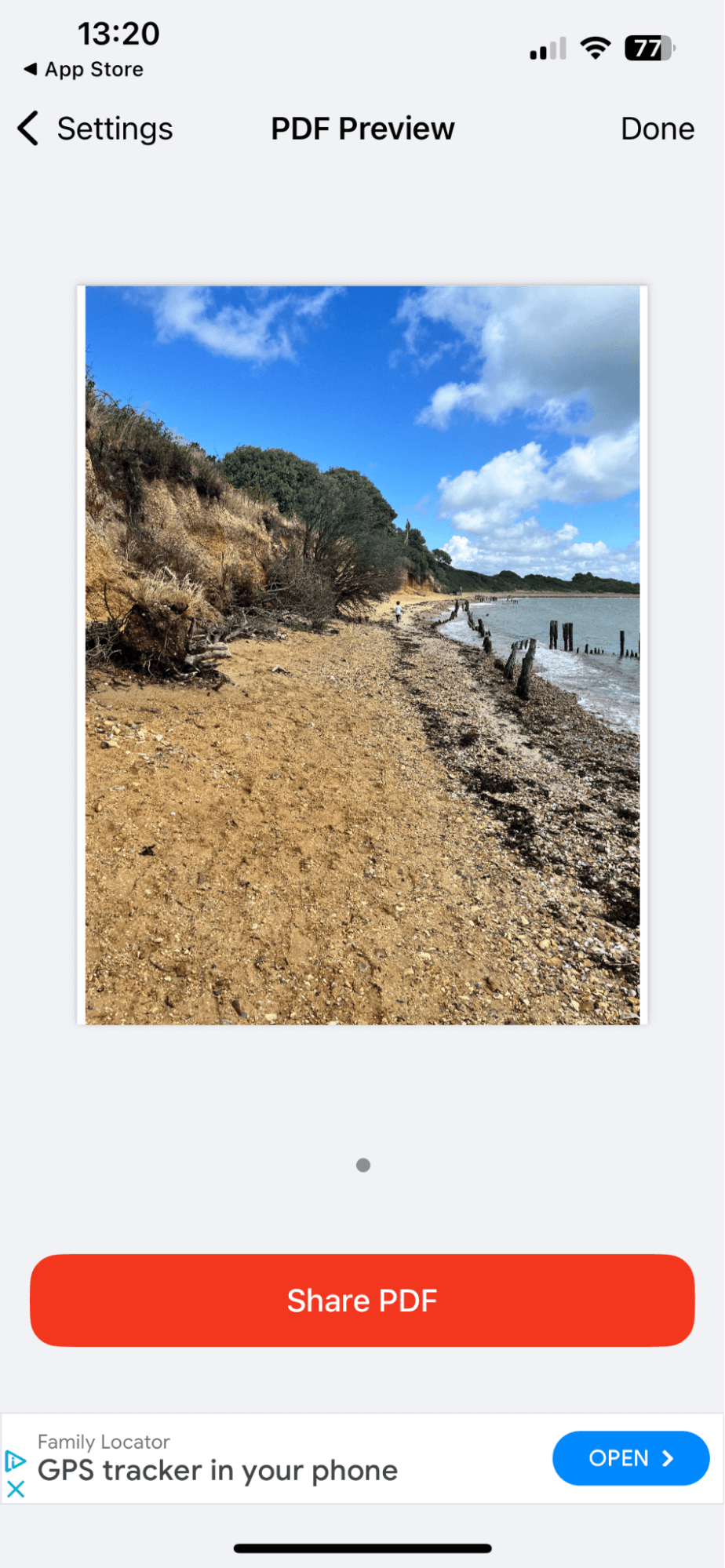 - 共有アイコンをもう一度押して、画像がPDFに変換されます。
