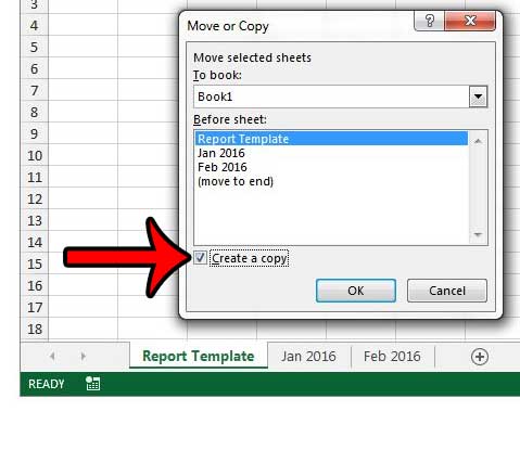 ステップ4:ウィンドウの上部にあるドロップダウンメニューをクリックして、コピーしたワークシートをオープンワークブックに追加するか、新しいワークブックに追加するかを示します。シートの前ウィンドウのセクション、次にクリックしますわかりましたコピープロセスを完了するボタン。