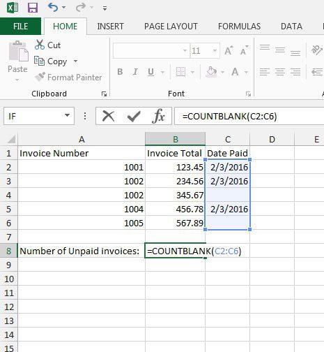 Excel 2013の範囲で空白のセルの数を数える方法は次のとおりです。