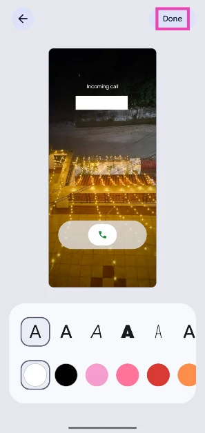 ステップ6: 作物画面に合う画像。を選択しますフォントそして色連絡先名。打つ終わり。