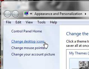 ステップ2:クリックしますデスクトップアイコンを変更しますウィンドウの左側にリンクします。